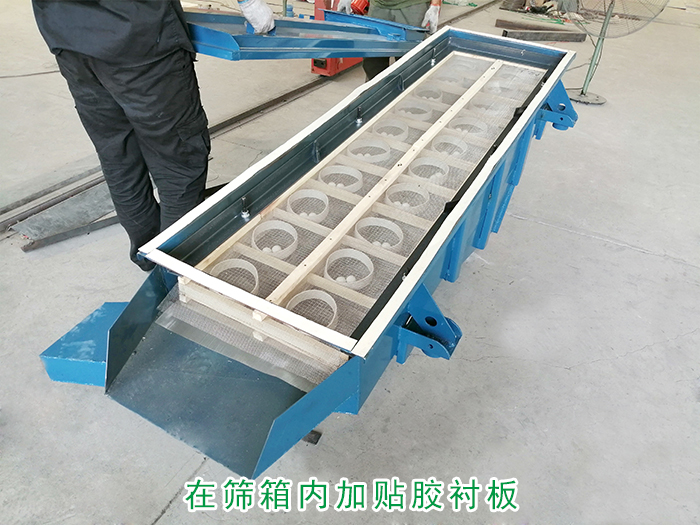 可在篩箱的側(cè)板、入料給料口、排料口內(nèi)加貼橡膠襯板,可以有效地抑制篩分機(jī)側(cè)板的高頻振動(dòng),減少輻射噪聲;在篩箱結(jié)構(gòu)的設(shè)計(jì)中,要考慮到篩箱的剛度,采用合適的側(cè)板剛度來減小振動(dòng),降低中低頻噪聲波。